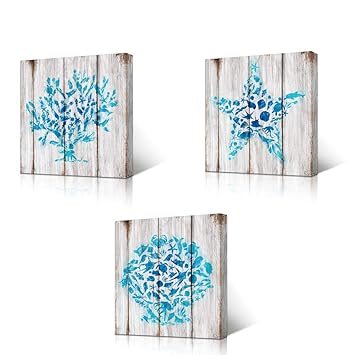 Get it as soon as tue jul 30. Save 5 with coupon. Vvovv wall decor teal blue bathroom wall decor seashell coral starfish decor painting ocean sea pictures art print on canvas stretched and framed ready to hang 12x12inchx3pieces 45 out of 5 stars 10.