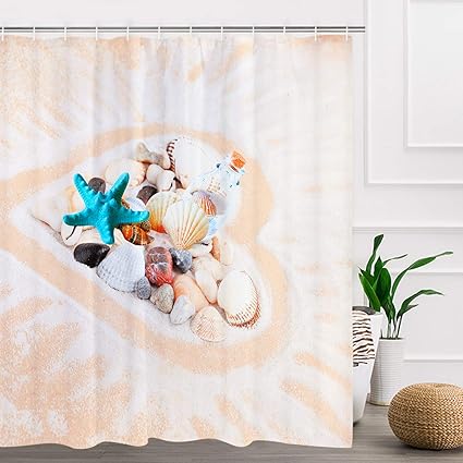 Wonzom Starfish Waterproof Shower Curtain Pearl Bathroom Decor