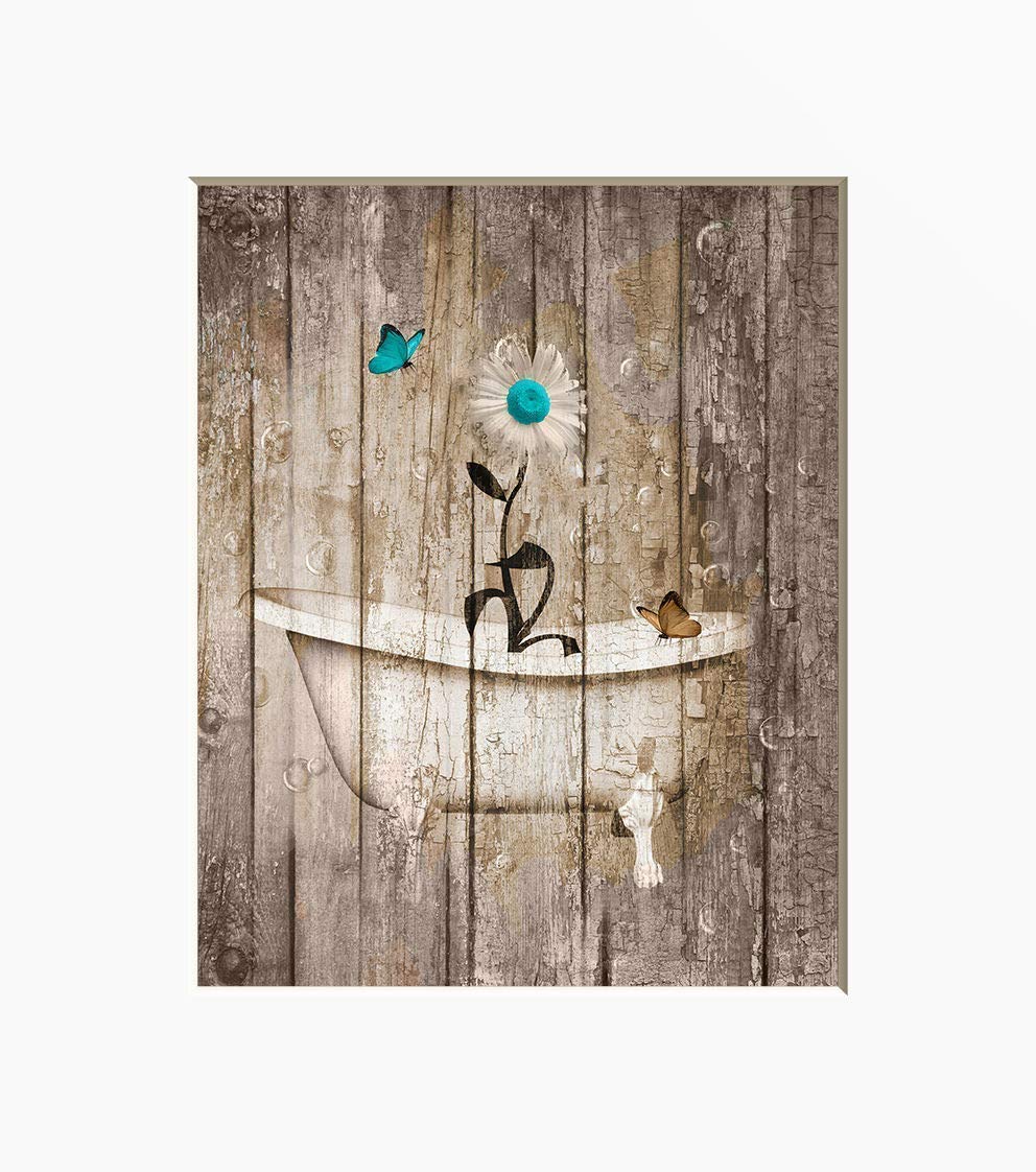 Farmhouse Bathroom Art Sunflower In Vintage Tub Teal Brown Home