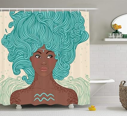 Amazon Com Zodiac Aquarius Shower Curtain African Ethnic Lady